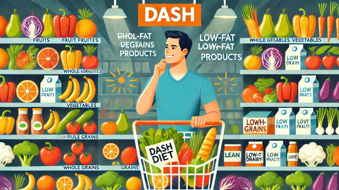 DASH 식단은 다양한 식품군을 포함하여 균형 잡힌 영양을 제공합니다. 이 식단의 주요 원칙은 다음과 같습니다: