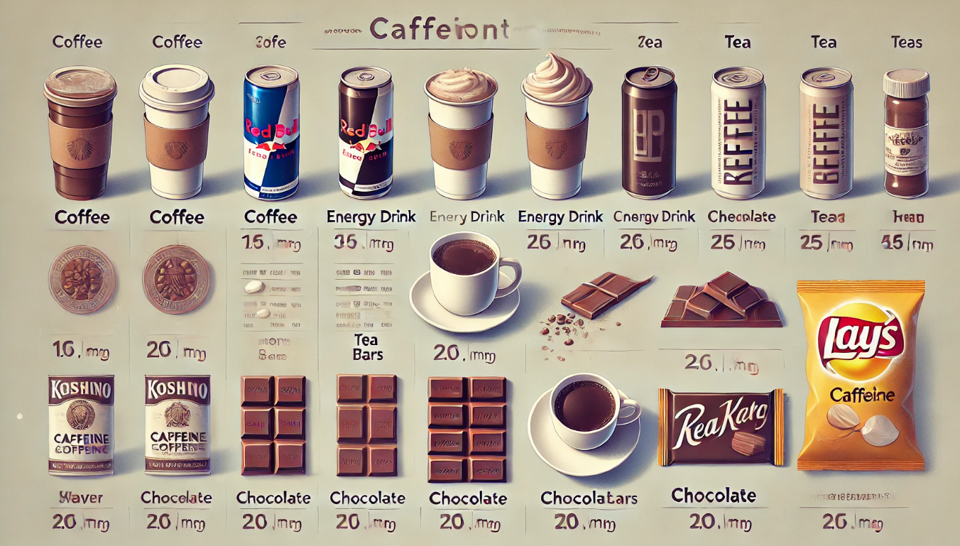 커피 한 잔에는 약 80~100mg의 카페인이 들어 있습니다. 에너지 드링크나 콜라, 초콜릿 등 다른 음식에도 카페인이 숨어 있으니 주의하세요!