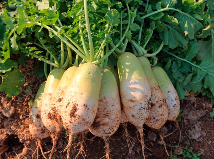 무는 식이섬유가 많이 함유되어 있어 소화기능을 개선하고 변비 예방에도 좋습니다.