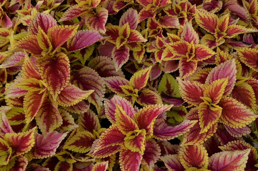 콜레우스의 가장 두드러진 특징은 잎의 다양성과 재미있는 색상입니다. 잎은 다양한 형태(둥글거나 길쭉한 모양)와 크기를 가지며, 녹색을 비롯하여 빨간색, 주황색, 노란색, 보라색 등 다양한 색상으로 빛납니다. 일부 종은 잎의 가장자리에 패인 모양이나 주름이 있어 더욱 독특한 시각적 효과를 줍니다.